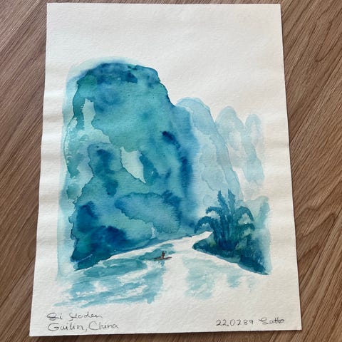 Gouache, Kinesisk kunstner, motiv: Fantasy