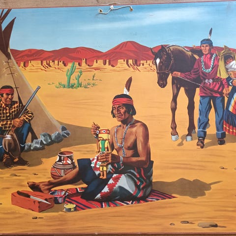 planche, motiv: kaffe og bomuld høstning, b: 94 h: 65