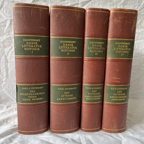 Illustreret Dansk Litteraturhistorie, Carl S. Petersen og Vilhelm Andersen., emne: litteraturhistorie, Brunt halvlæder. Lækkert håndværk. Navn på tidligere ejer på forsats.