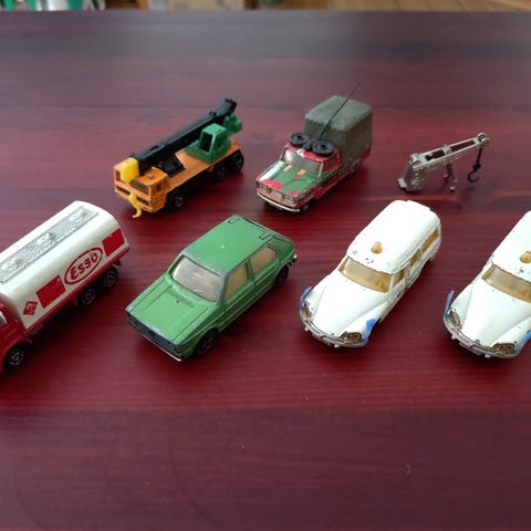 Førerhus kan tippe. Trailer - øverste dæk kan skubbes ned. Plads til 5 stk. modelbiler i 1/64. Flot model med lettere brugsspor. Alle hjul kører fint. Venstre sidespejl løst i top.