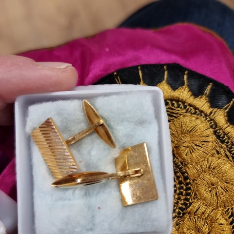 Manchetknapper, Forgyldte, firkantede retro manchetknapper.