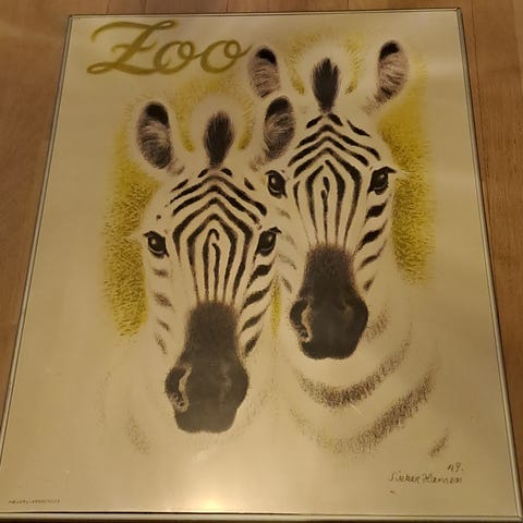 Zoo plakat med tal i Aluramme, Klassisk plakat fra Københavns Zoo med tallene 1-10 og sjove, flotte dyr i samme antal. Det har ikke været sjovere at lære at tælle ??