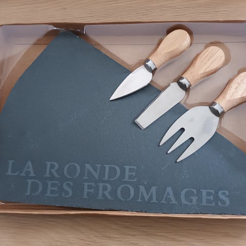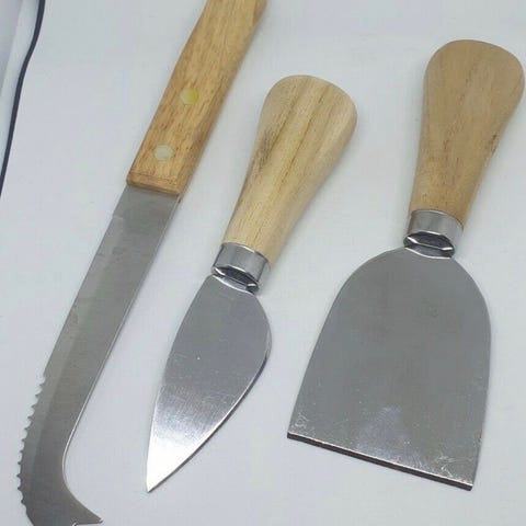 Bestik, Ostebestik, 2 dele, antagelig i rustfrit stål, mål henholdsvis 15 og 18 cm. I fin stand.