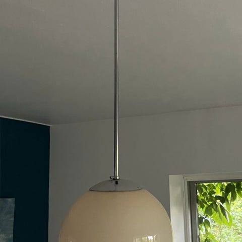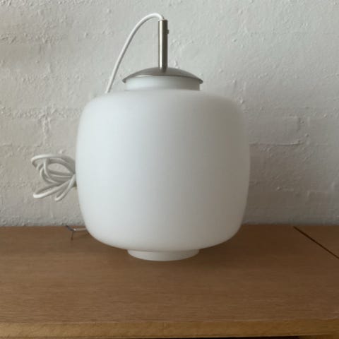 Pendel, Design, Super flot lampe i håndlavet opalglas med træ i ophæng sælges. Er i flot stand