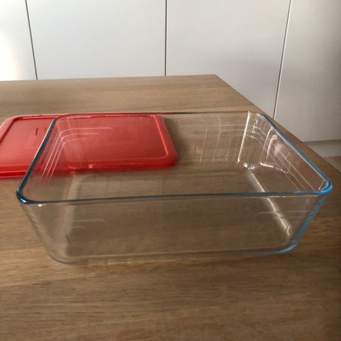 Aflange glas fad, Aflangt glas fad med låg. Motiv af grøntsager på siderne. Pyrex-glas ovnfast. Det tåler maskinopvask, ovn op til 300°C, mikroovn og fryser ned til -40°C. Det tåler termisk chok op til 220°C. Det betyder, at de kan gå direkte fra -20°C i fryseren til 200°C i ovnen. Ovnfast. Længde 30* 19 cm. Højde 10 cm. Pris 200 kr. Se også mine andre annoncer. Hv123