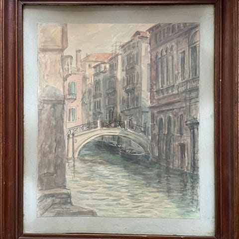 Akvarel, Michael Bang-Sørensen, motiv: Landskab, stil: Naturalistisk, b: 29,5 h: 35,5, Smukt akvarel fra Venedig malet af Michael Bang Sørensen i 1954.