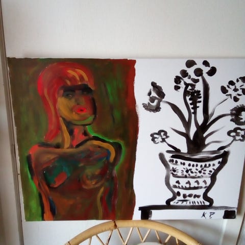 Akrylmaleri, Maria Alexander Rantzau, b: 100 h: 120, Glad kvinde i pink som giver glæde i rummet :-)
