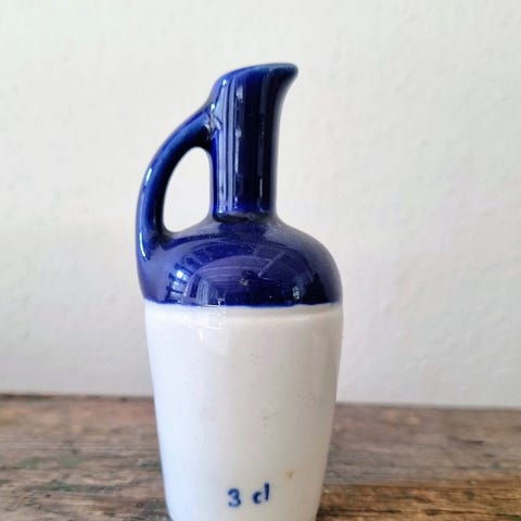 Skrevet på den blå kande er Langs old scotch whisky. Så det er i hvert fald en mulighed hvis man ikke bare vil bruge den som pynt, da den står flot.