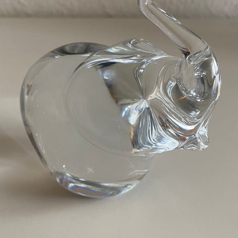 Fin gammel figur af en elefant, designet af Micheal Bang for Holmegaard i 1969.