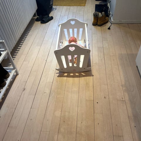 Dukkeseng, Dukkevugge, Rigtig flot dukkevugge i god stand. “Stræklagen og dynen kan medfølger. Kan hentes i Valby.