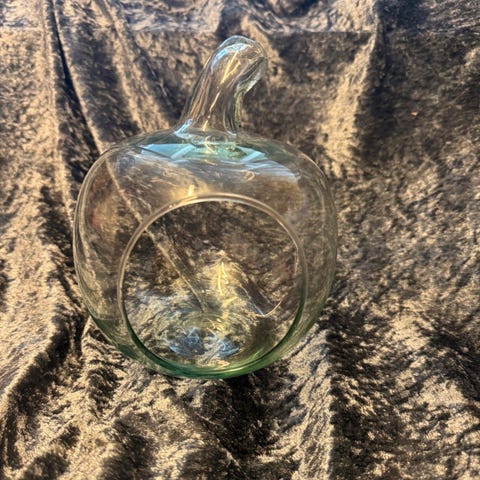 Æble i glas. Pink spættet gennemsigtig glas med fin stilk. I bunden står der Lance. Diameter og højde ca 7cm. Flot stand.