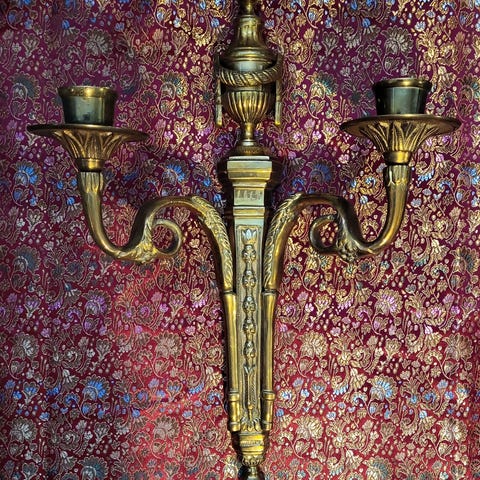 Lysestage, Messing håndlavet lysestage med 24 lys. På fire små kugleben.