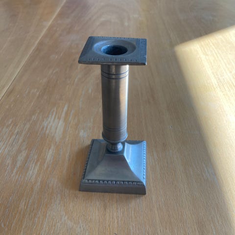 Tinlysestage, Tinlysestage, højde 14 cm, har et par mindre skrammer. Kan ikke sendes.