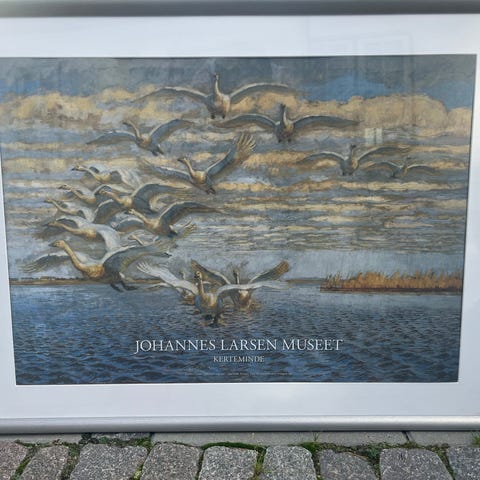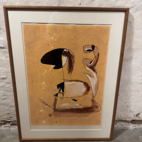 Litografi , Johannes Larsen, motiv: Udsigt over tage i Kerteminde , b: 30 h: 24, Der er desværre lidt mørke skygger på billedet pga. lyset.