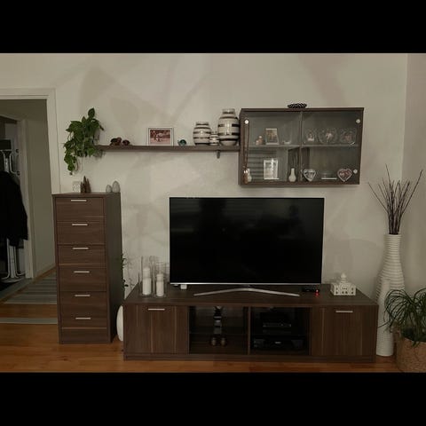 Tv-møbelsæt med tv-bord, reol, hylde og overreol. Sælges samlet. Brugt i et par år. God stand. Se også mine andre annoncer, da jeg sælger møbler af samme kollektion, herunder et sofabord og sidebord.