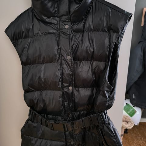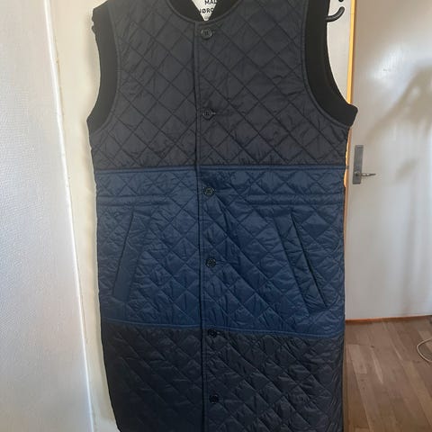 Vest, MADS NØRGAARD, str. Medium, Sort, Uld + akryl , Ubrugt, Ribstrikket lang vest i uld-mix.