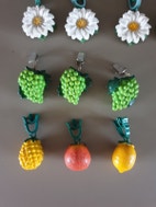 Dugklemmer, dugvægt, dug vægte, dug klemme, Dugvægte, dug klemmer, dugklemmer, dugvægt, Vintage dugklemmer / dugvægte med frugt / frugter sælges i følgende sæt: