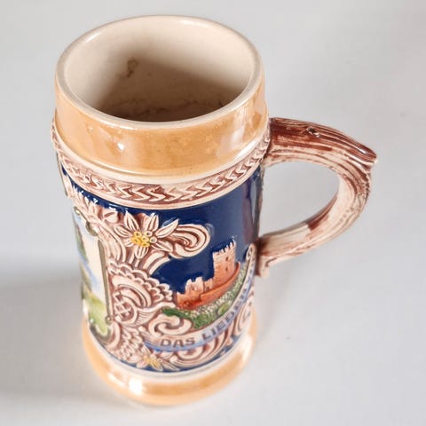 Stentøj, Originalt østrigsk jægerte-krus, Savner du stemningen fra afterski i Østrig og at nyde en kop dampende varm jægerte? Kom et godt stykke af vejen ved at købe dette østrigske Jagatee (jægerte)-krus – så skal du blot lave teen selv. Det originale krus er i fin stand og kun brugt få gange. Sælges for 70 kr.
