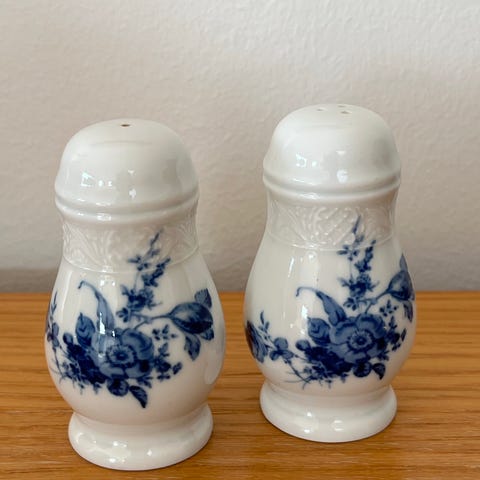 Porcelæn, Salt/peber, Royal Copenhagen, 2 sæt salt/ peber sæt. Blå blomst. Kantet.