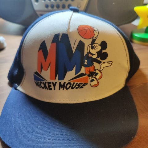 Kasket, Børnekasket, Disney, str. 128, Beige med motiv af Mickey Mouse foran. Hovedmål ca. 54 cm, men kan indstilles i bredden bagpå.