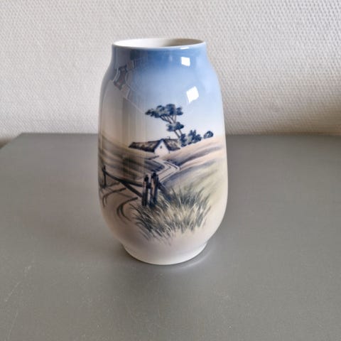 Vase, Porcelæn, Vase fra Royal Copenhagen Landskab 2695-2037 i perfekt stand fra ikke ryger hjem. Størrelse h.16 cm og rundening 6,5 cm. Ved ikke hvor gamle vasen er andet meget gamle. Det er et arve stykke. Kan sende med gls til pakkeshop