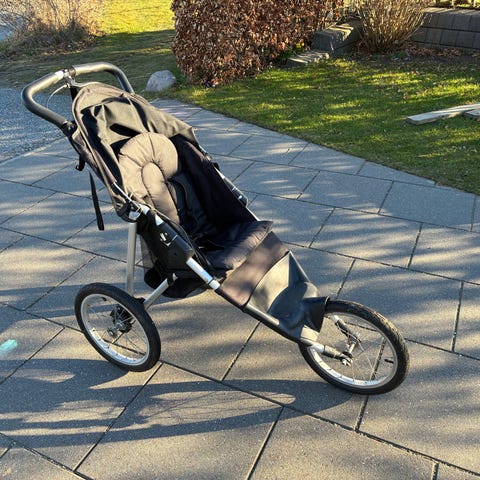Løbevogn, Løbevogn, Zero2Four, Fin løbevogn til når man vil have de mindste med på løbeturen. Små brugsspor - den er ikke helt ny længere - men virker upåklageligt. Trækker lidt til højre, når man løber med den. Med regnslag. Kan klappes sammen, så den kan ryge med i bagagerummet på bilen.