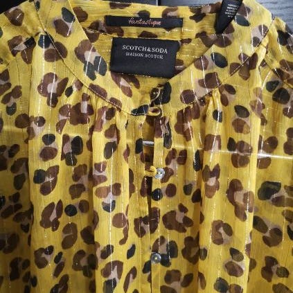 Scotch & Soda smuk lilla peplum bluse med mørke knapper i str. S. 100% viskose. Stoffet er meget delikat, og selvom den har været håndvasket, så har jeg opdaget en håndfuld små huller på det ene ærme (man skal lede efter dem for at se dem). Style: Dahlia.