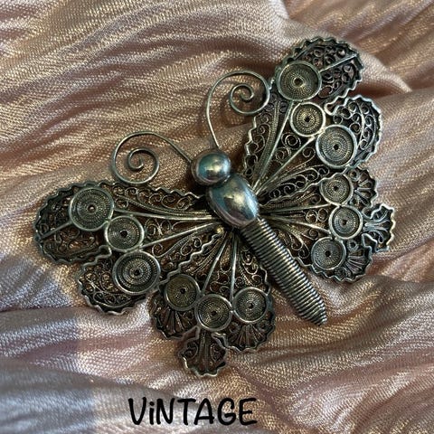 Broche, sølv, Filigran med emalje, Filigran med emalje, sølv, 800 med lyseblå,emalje, "Sommerfugl", 19. århs. slutning, meget fin og nydeligt udført, vurdering 2600, kom med et bud