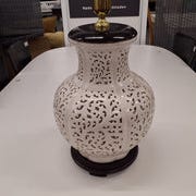 Den 8-kantede lampe har et flot gennemskåret mønster på alle lampens sider.