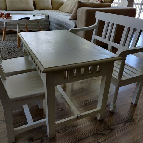Bord/bænkesæt, Small Design, Super fedt og holdbart bord/bænke-sæt der passer perfekt til 3-7 årige unger. Meget holdbar overflade. Nem at tørre af.