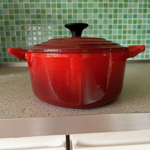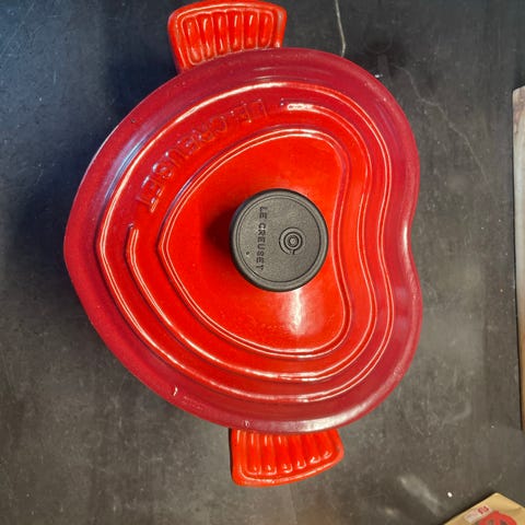 2 L gryde, Le Cruset, Brugt med fin Le Cruset hjertegryde. 2 l.