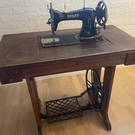 Symaskine, Antik Pfaff med bord og stel
