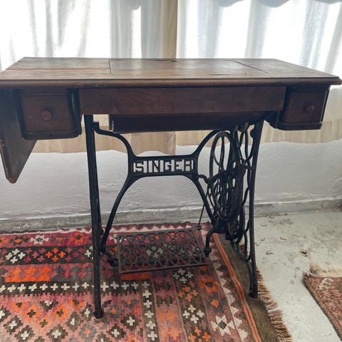Synaskinebord, Singer, Singer symaskinebord med 3 små skuffer i hver side. Skal afhentes i Strøby