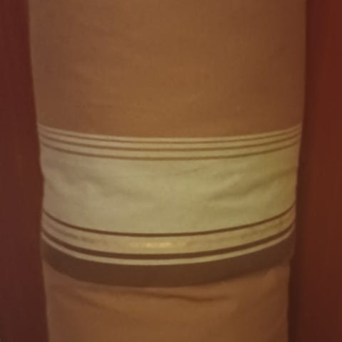 Pølle, Firkantet pølle med læderomtræk i fin brun farve. Skammel. Den er lidt slidt men ellers hel og funktionel.