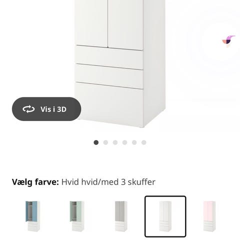 Garderobeskab, Ikea -Småstad, b: 60 d: 57 h: 180, Gardeskab med skab og 4 skuffer sælges.