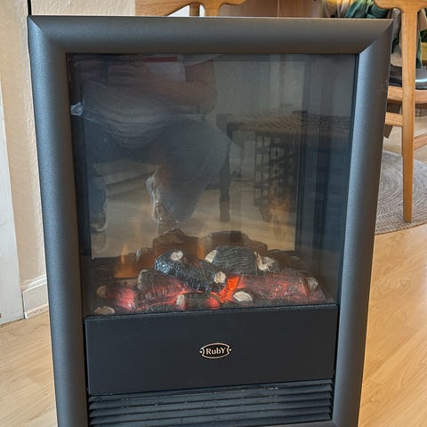 DAY, Kunstig pejs - kan køre både på batterier og med medfølgende 240 volt adapter.