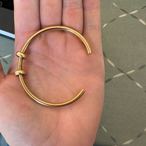 Armring, forgyldt, Granater mm, Granater, 19. eller 18. årh. måske tidligere. Antageligt underlødigt sølv legering Vurdering 3500, Armring, Indvendig Diameter 5,0 cm, kan åbnes ( der er sikkerhedskæde, guld eller forgyldt, på begge sider af låsen ), kom med et bud, nye billeder kommer da det er vasket og det er snavset på disse billeder