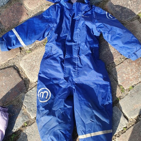 Flyverdragt, Fleece indvendigt , Minymo, str. 86, Flyverdragt brugt meget lidt. Mangler en gummi strop ved fod. Strop til at hænge op er knækket. Mærke på arm faldet lidt af. Men alle 3 dele ikke af betydning for varmen. Er okay blød i det.