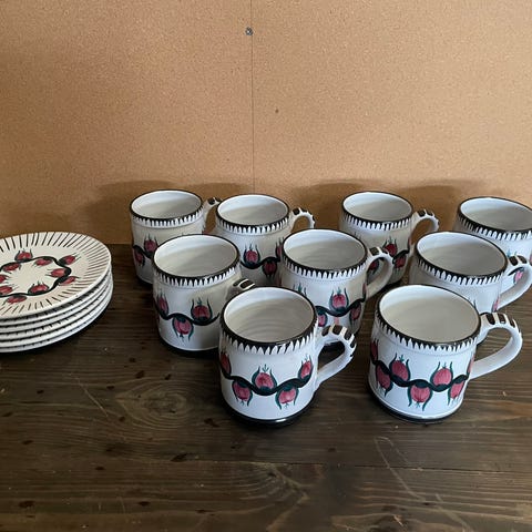 Keramik, Kaffekrus og tallerkner m.m., Udesen Danmark, Rigtigt smukt sæt bestående af:
