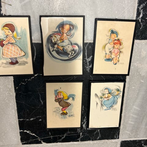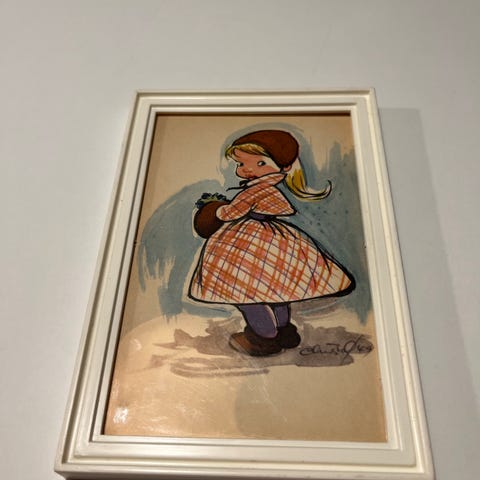 Små billeder, 3 små fine billeder med Christel tegninger i rammer.