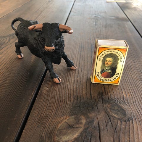 Andre samleobjekter, Tyr, Håndlavet tyr af ældre dato. Den er med perler og glas effekt. Den er sjælden. Højde 20,5 cm. Længde 24 cm. Pris 400 kr. Se også mine andre annoncer. Hv123