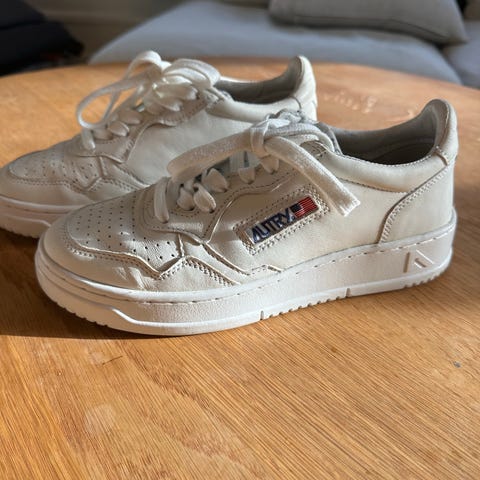 Sneakers, str. 36, Autry, Hvid med guld, Ubrugt, Autrys Medalist Mid Sneakers i hvid og metallic guld. Fremstillet af høj kvalitet læder, disse sneakers har en perforeret rund tå, flade snørebånd og Autry logo på siden og tungen. Den polstrede ankel og gummisål giver ultimativ komfort og støtte. Med en sålehøjde på 2,5-3,5 cm er disse sneakers perfekte til enhver afslappet lejlighed.