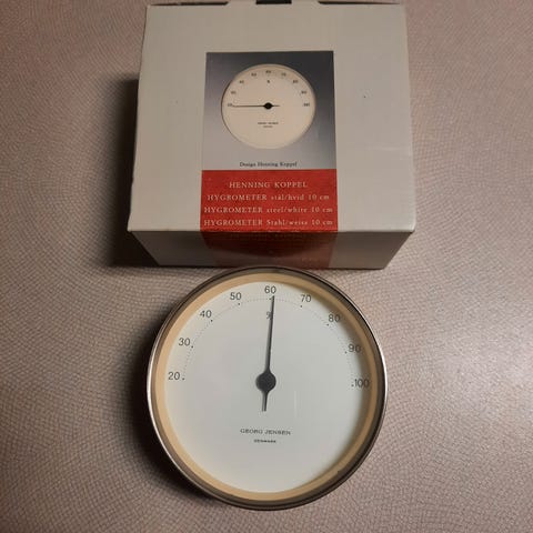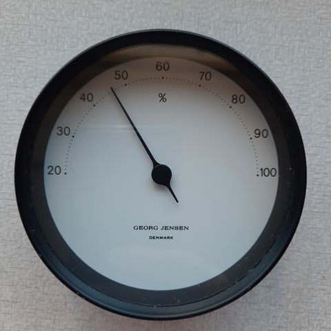 Hygrometer, Georg Jensen, Henning Koppel for Georg Jensen. Hygrometer 15 cm udgaven. Sort med hvid skive. Original stand. Ses ikke så ofte. Rigtig god pris. Se mine øvrige annoncer for mange spændende ting