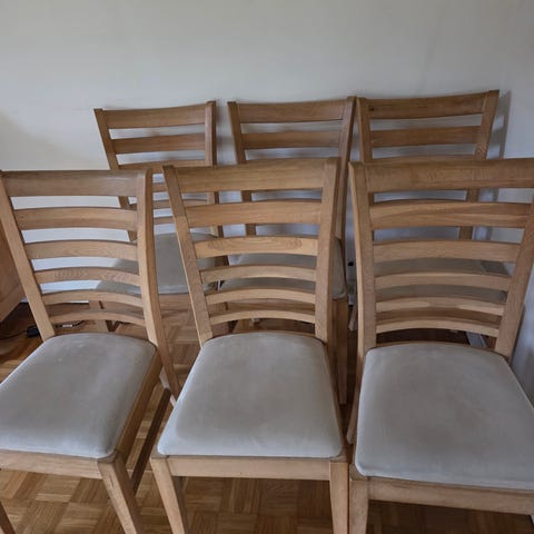 Spisebordsstol, Eg, 6 spisebordstole i egetræ med sort sæde, kraftig med armlæn pr. Stk. 1.500,- Sælges samlet. Fejler ikke noget.
