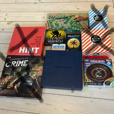 Forskellige spil. 1 for 75kr. Meget god stand., Forskellige spil, brætspil, Mouthguard challenge: der er brugt to af mundåbnerne, så der medfølger kun de to andre. Brugt en gang.