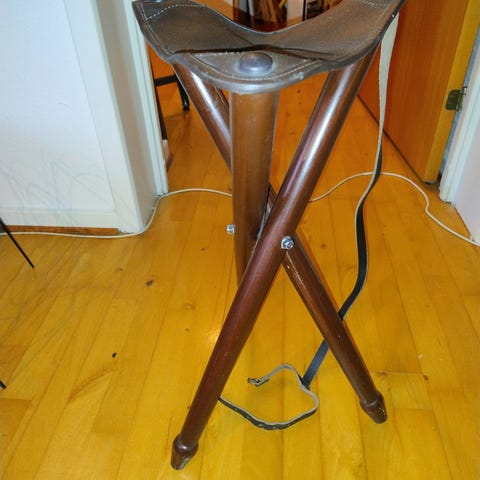 Jagtstol, Vintage Unik jagtstok / stol , brugt , læder,