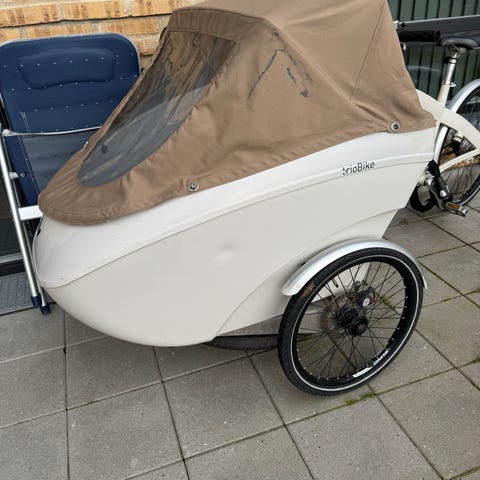 Triobike, Triobike , 5 gear, stelnr: Sendes ved forespørgsel, Den originale Triobike der kan være både ladcykel, citybike og jogger. Skivebremser foran, indvendige gear. Trænger til en kærlig hånd som jeg ikke får tid til at give den. Mangler kaleche, ryglæn og ekstra forhjul.