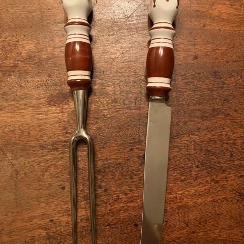 Bestik, Bjørn Wiinblad Siena Forskæresæt I Porcelæn, Bjørn Wiinblad, Smukt ældre Siena forskæresæt i porcelæn og rustfri stål, designet af Bjørn Wiinblad for Rosenthal.