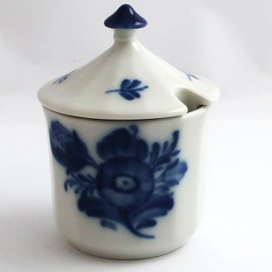 Porcelæn, Sennepskrukke Flettet Blå Blomst 10/8211, Royal Copenhagen