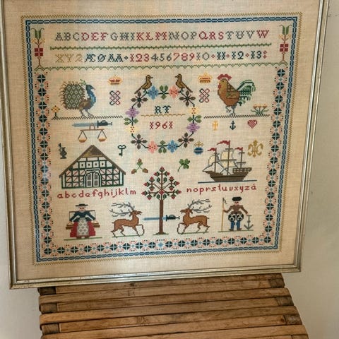 broderi, korssting, blomstermotiv, hestemotiv, broderi alfabet, syning, boligindretning, vægdekorationer
